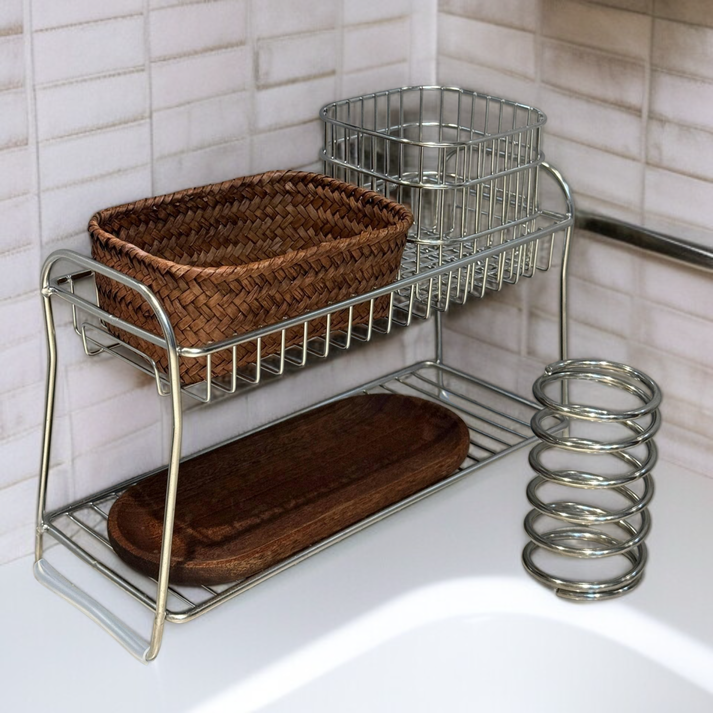 Couleur : Étagère à deux niveaux (acier inoxydable), étagère à ressort (acier inoxydable), panier de rangement de bureau (acier inoxydable), plateau ovale en bois massif (bois massif de wutong)